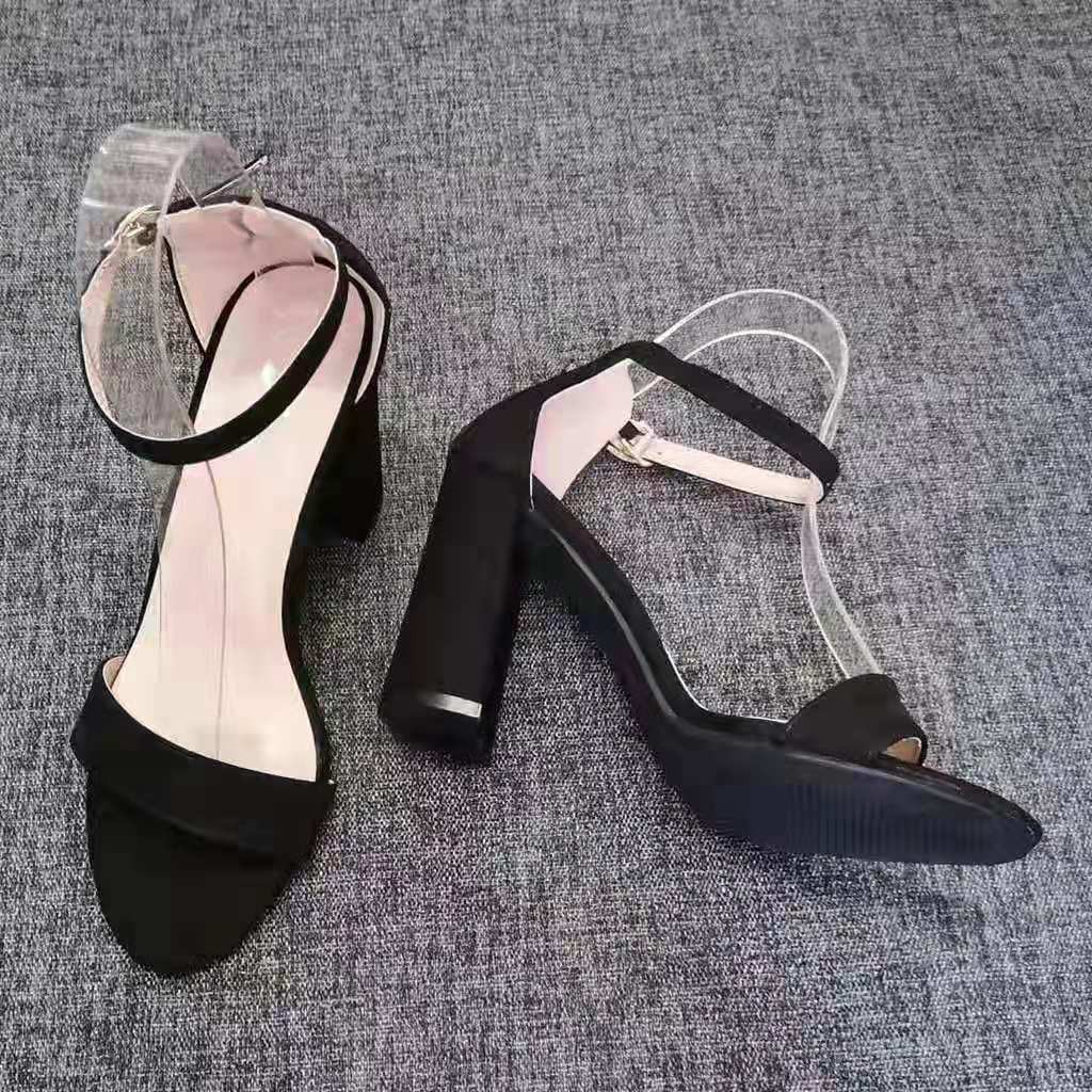 Korean Suede High Heel Sandals Block Heel 2.5'' | Shopee