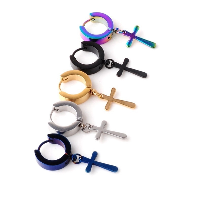 Anting Titanium Anting Pria Anting Salib Tindik Hitam