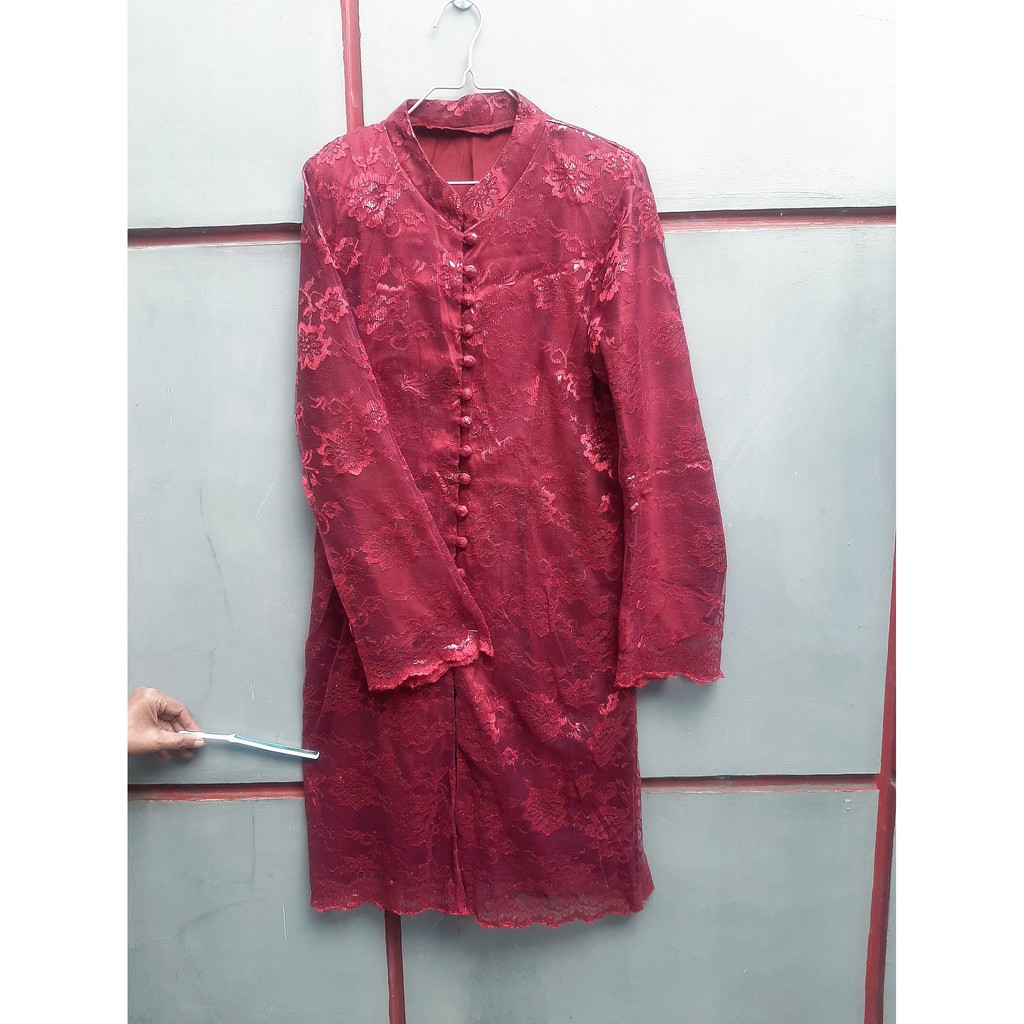 Baju Kebaya Atasan Merah Maroon Size L Full Furing free