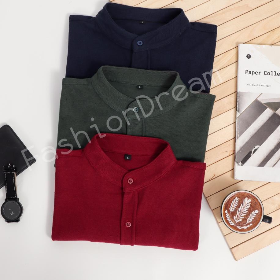Harga Promo.. KEMEJA PRIA TANGAN PENDEK TANPA KERAH